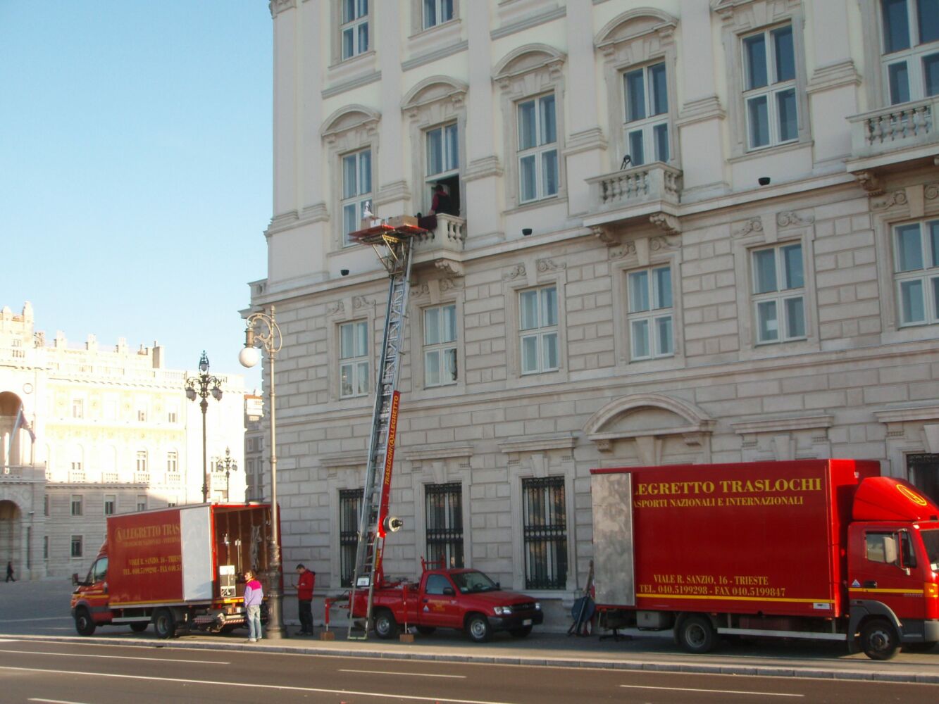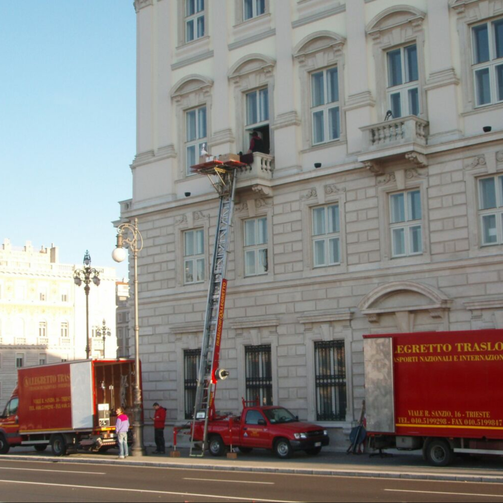 Grazie ai nostri mezzi all’avanguardia e alle tecnologie più moderne, siamo in grado di gestire qualsiasi tipo di trasloco su tutto il territorio nazionale e internazionale, inclusi i traslochi con piattaforma aerea. Contatta Allegretto Traslochi di Trieste per scoprire come possiamo aiutarti!